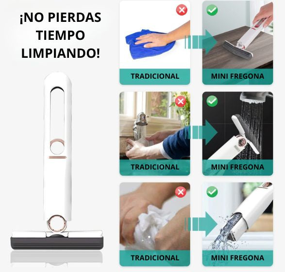 La mini fregona llega donde otras no: rápida, compacta y súper absorbente. Perfecta para derrames, esquinas y limpiezas al instante. Pequeña, pero imparable.