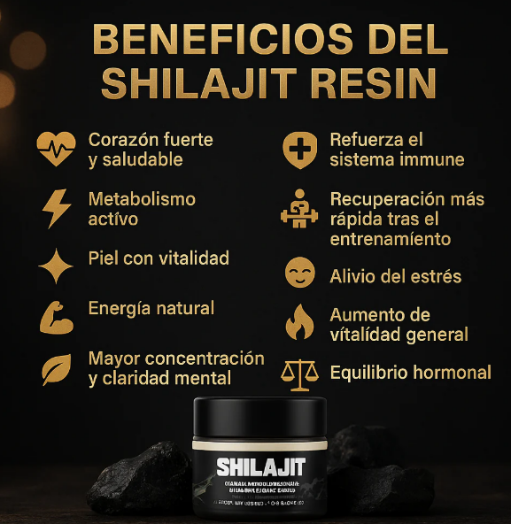 ¿Te sientes agotado, sin fuerza ni motivación? El Shilajit te ayuda a recargar tu cuerpo desde dentro, elevando tus niveles de energía, enfoque y rendimiento físico sin cafeína ni estimulantes.